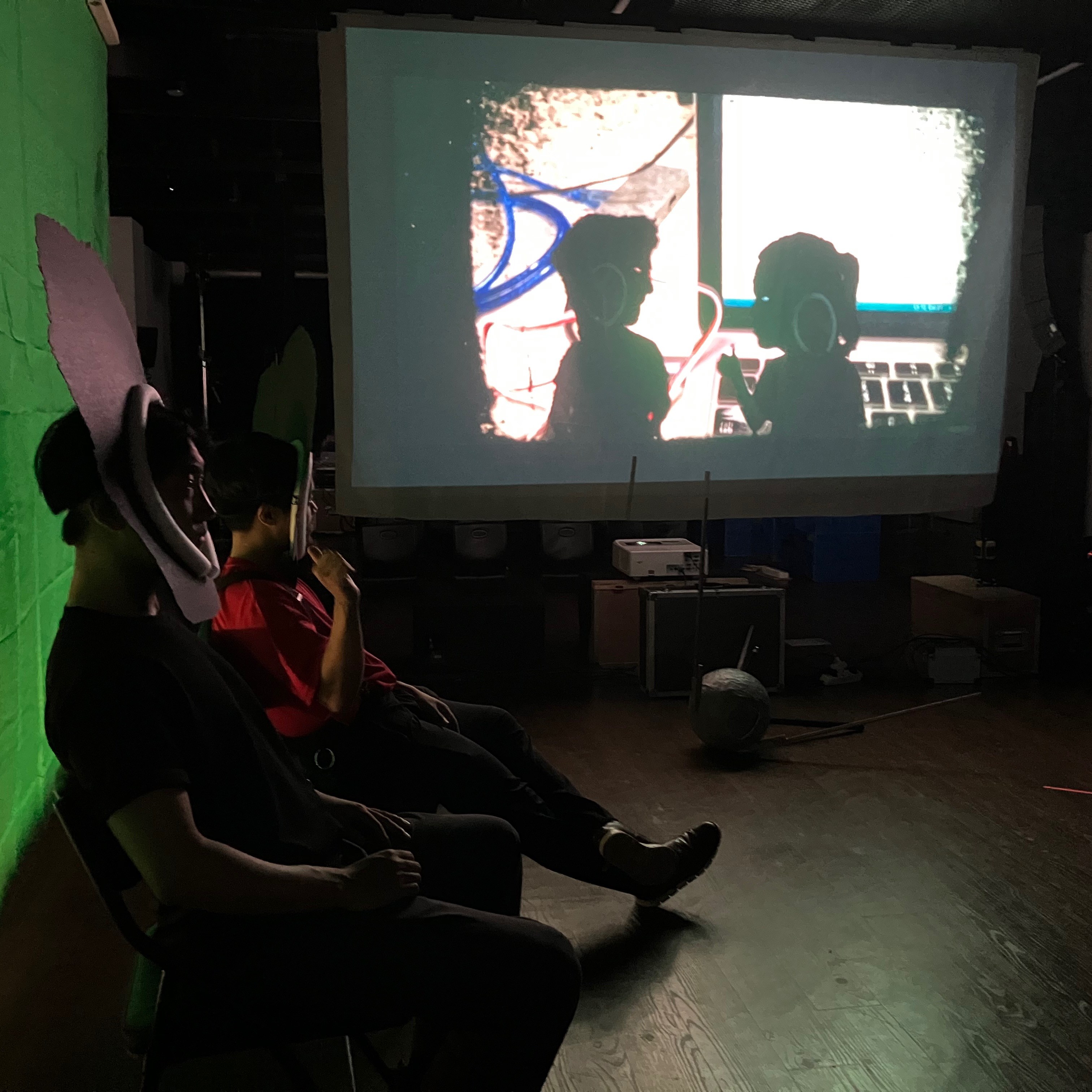 크로마키 섹션, 어린이들이 체험할 수 있는 그림자 놀이를 크로마키 배경 영상과 함께 스크린에 띄운다.